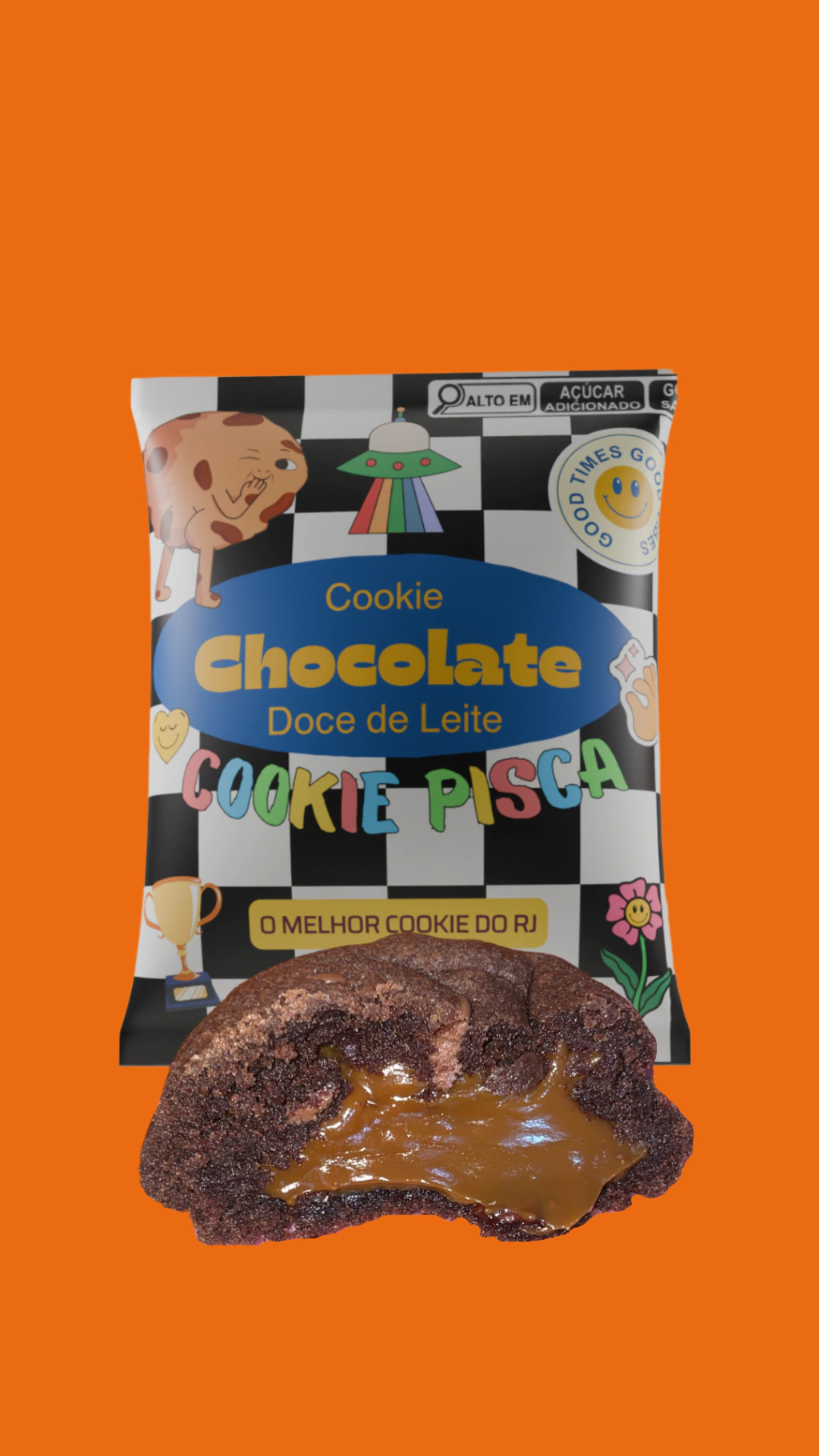 O Cookie Chocolate com Doce de Leite está sempre no top mais pedidos, feito com a nossa massa exclusiva de chocolate e muuuito recheio de doce de leite, é bom demaiiis!!